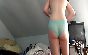 Busty girl changing wearing lace panties