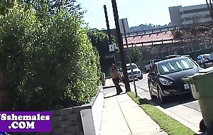 Busty glam tranny assfucked after blowjob
