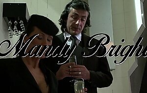 MILF with big fake boobs gets cum in mouth and glass of champagne after being right fuck wife