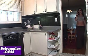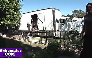 Busty tranny in spex assfucked before facial