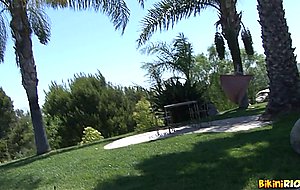 lash bikini brunette poolside