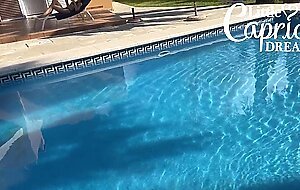 Puffy tits Little Caprice gets a creampie by the pool - foreign person HD