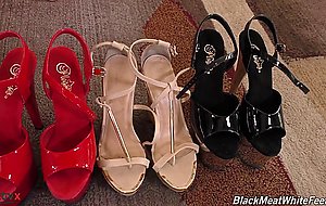 Alexa Grace and Giselle Palmer are bi-sexual foot sluts. They're both black cock sluts, too. Just watch. Before the action starts, Alexa and Giselle will admire all the shoes their foot slaves purchased. Their foot slaves found our gals via social media, and they love buying the sexiest, sluttiest heels for them to wear. After they each pick out their favorite pair of shoes, Alexa will put on Giselle's heels...and vice versa. Not before worshipping each other's feet though! And lurking in the background? No other than Flash Brown himself! Soon, Flash's enormous slab of black meat is fucking those pretty white feet...and wet, willing mouths...and tight, pink cunts. Flash pounds the shit out of both sluts before hosing down all four feet with a healthy load of his white, creamy spunk. What next? Clean up duty! Alexa will make sure all the cum is cleaned from Giselle's feet...and then Giselle will return the favor! You're gonna love this foot session!!
