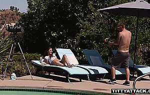 Nina North sucking cock by the pool HD