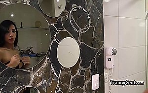 Sheshaft in fishnets fucks good HD
