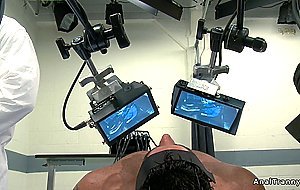 Big tits brunette shemale agent Yasmin Lee saved Marcus Ruhl from mad scientist Robert Axel and then fucked them in threesome in bed
