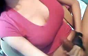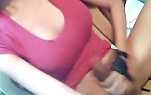 Big tits tranny jerking her big intense cock