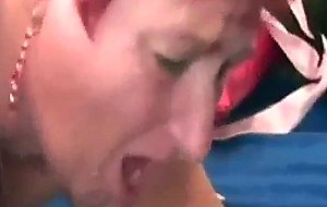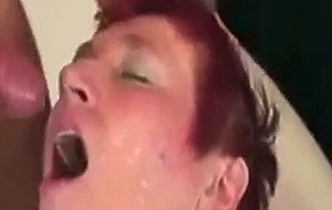Fat busty granny drinks young cock load
