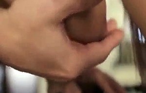 He caresses her tits while in kitchen