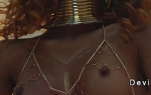 4:26Ebony war Goddess Scarlit Scandal strips off tiny panties and fingers her hairy pussy then big dick Seth Gamble hard fucks her in pussy and deep throat on the couch outdoors